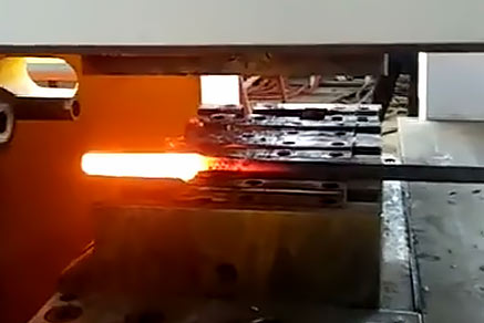 可用于中大型長桿類鍛件的局部鐓粗、沖孔、塑形,在礦山機械工具、石油機械、鐵路基建等領(lǐng)域應(yīng)用廣泛,如抽油桿、礦山釬桿、鐵路道叉等。
